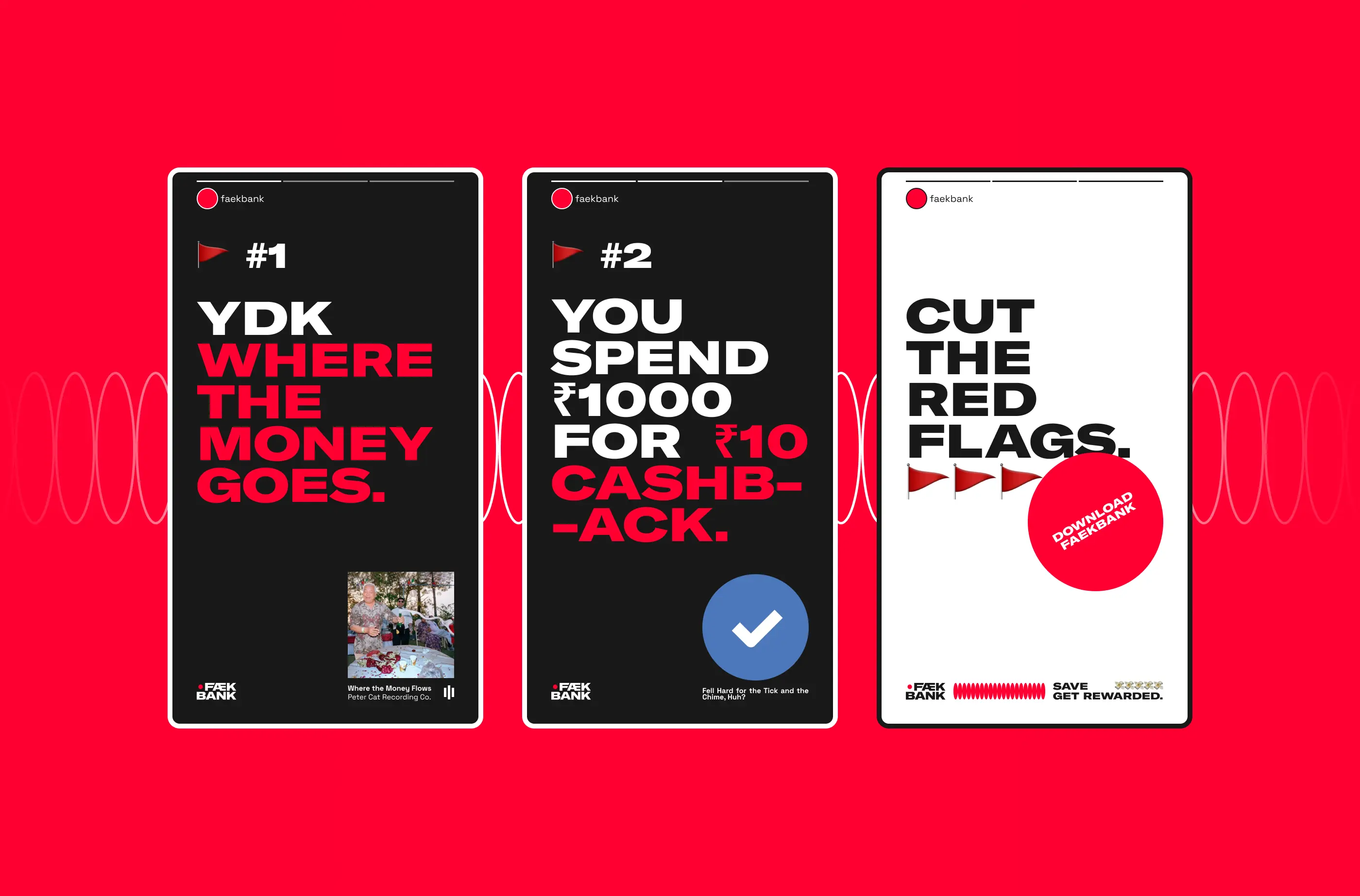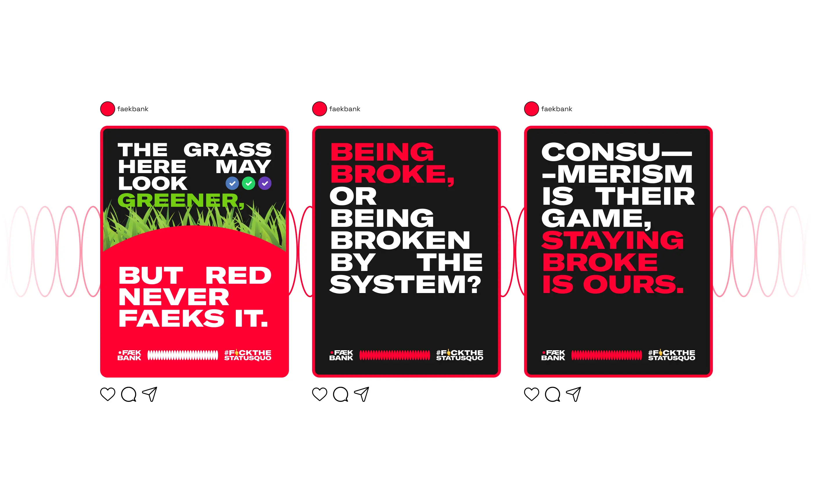 Making the product fairly simple, easy-to-use and explain, we a path was paved to spread the word like wildfire, through word-of-mouth. but converting users would take a lot more work, so we delved deep into the brand message and vision. Faekbank disrupts the fintech space with a multi-platform strategy that challenges the status quo. From quirky Instagram stories and rebellious merchandise to eye-catching metro station banners, every touchpoint delivers bold messaging and inspires curiosity. This strategy amplifies the brand’s mission to reward financial discipline while standing out in a crowded market.